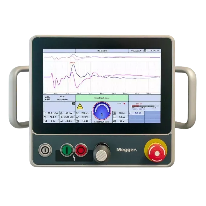 PRIMEON integrates a built-in Teleflex® RDR radar for time domain reflectometry, an insulation testing module, a powerful high-voltage DC source, a multi-stage surge wave generator (thumper) compatible with the digiPHONE +2 for pinpoint accuracy, a high-frequency burner for fault conversion, and a range of industry-standard radar and transient prelocation methods. All functions are controlled from a single, centralized unit featuring a user-friendly graphical interface.