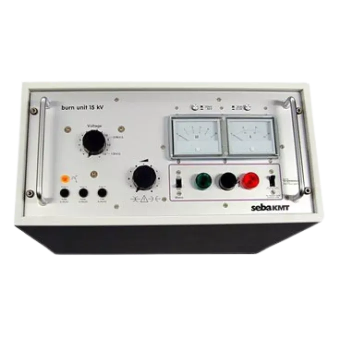 The T22/13B 15 kV burn-down unit is a very powerful, portable, high voltage instrument which is primarily used for locating faults in low and medium voltage power cables of, mains, and control cables. It is primarily used for burning down high impedance and intermittent cable faults in low and medium voltage power supply networks. In addition, it can be used in conjunction with the appropriate connecting devices and a time domain reflectometer (TDR) for prelocation using the arc reflection method (ARM).
